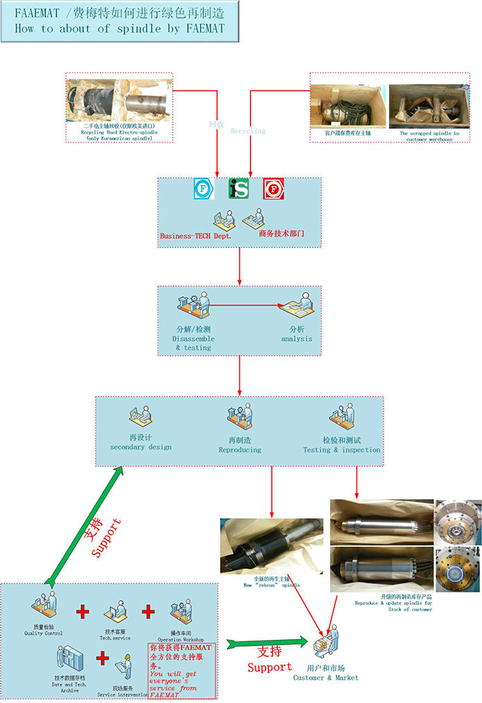 ? ? ? ?FAEMAT費梅特提供針對歐美產電主軸的報廢庫存的回收-再制造業務。這項業務基于企業的社會責任的義務,同時也著眼于提升高端電主軸的再利用率。