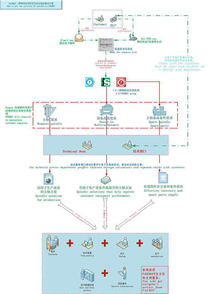 FAEMAT提供主軸技術解決方案--意味著我們提供給用戶的不僅僅是主軸產品,而是一種綜合的技術應用和實用方案。充分地了解用戶實際應用方向和具體參數,進而將主軸的結構與參數設計做到實用性匹配的極致;并站在用戶的角度考慮,兼顧產品的信價比與客戶端生產效能。切實地將主軸從單一部件類機電產品提升到實用解決應用方案的高度。三大參與型技術服務方向,支撐用戶的技術享受: