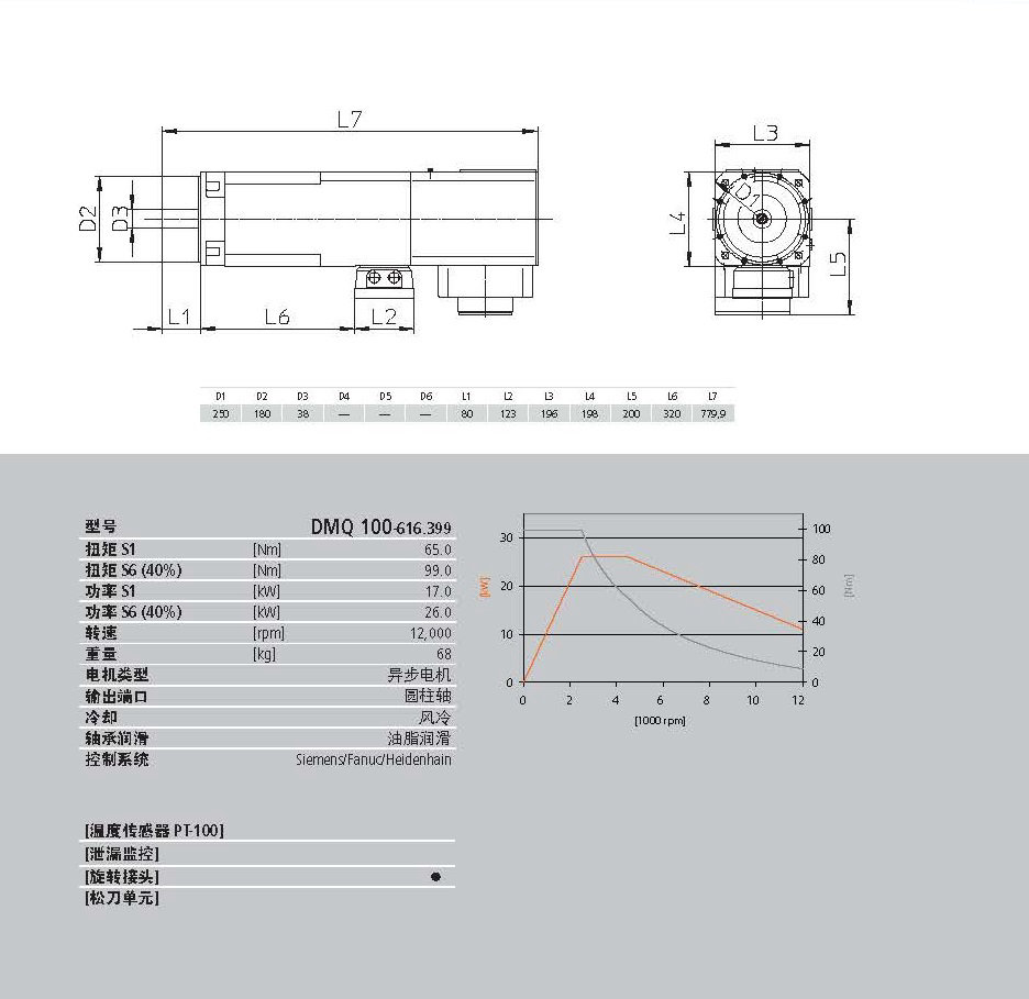 ? ? ? ?凱斯勒KESSLER主軸(風冷主軸),風冷電機-KESSLER風冷電機幾十年來成功運用于工業領域中,由于采用了異步電機的設計,其具有低成本、高效和經久耐用的的特點適合于主軸驅動。高磁弱化、結構緊湊確保了高轉速。可低功率驅動而無需電涌保護裝置。風冷異步電機為切削加工提供了最優性價比的解決方案。