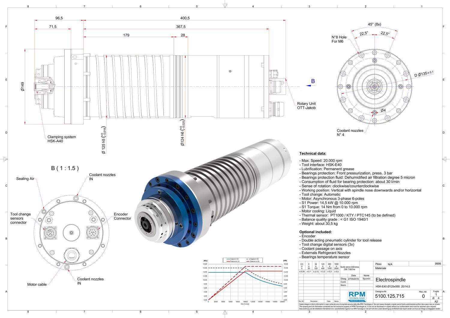 S1=14.5KW Max:20000rpm HSK-E40/14Nm
