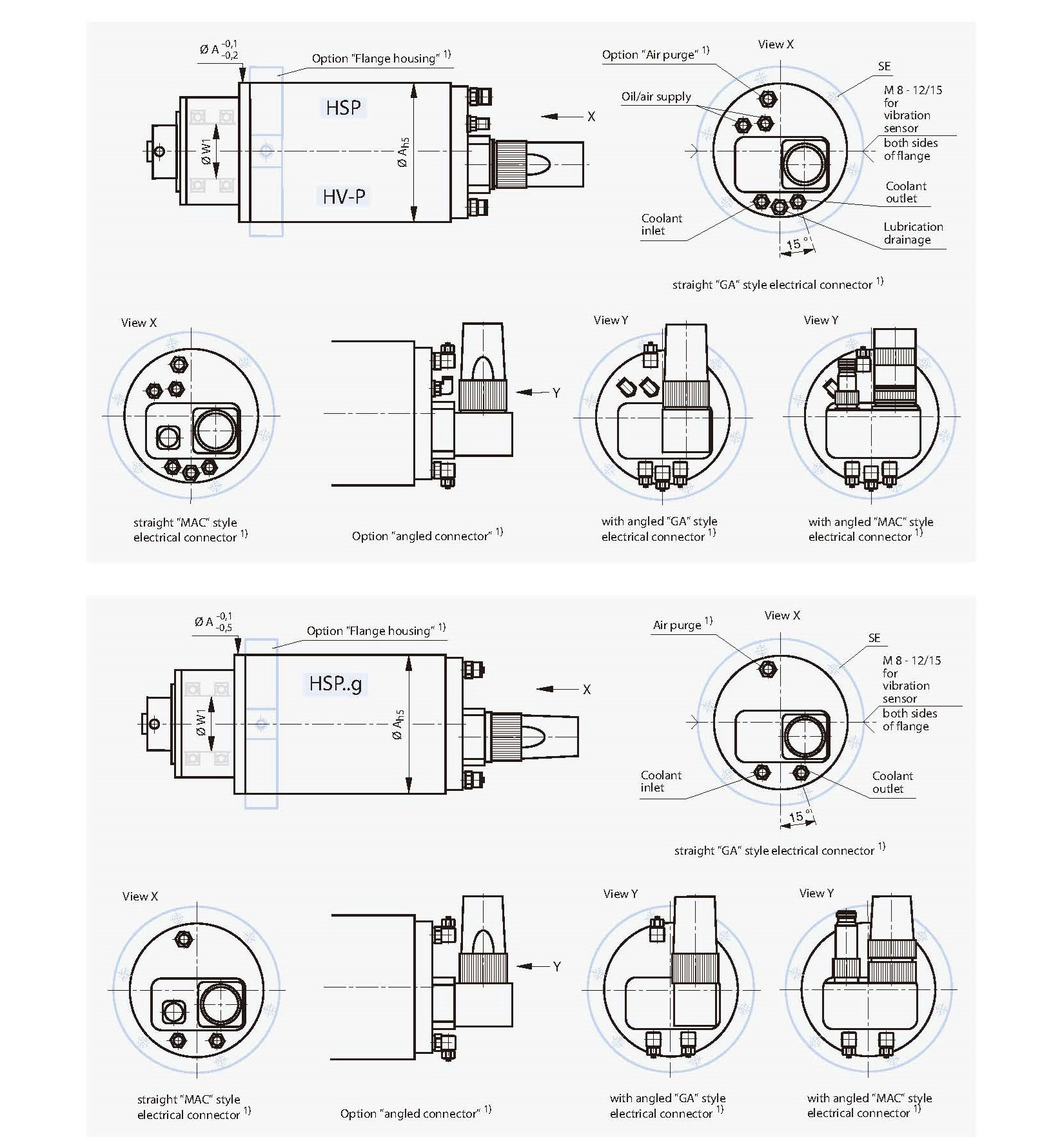 德國(guó)吉姆恩GMN主軸HSP,HV-P,此型號(hào)主軸,高溫高壓帶整體式異步電機(jī)、液冷式前軸承和定子的高頻主軸密球軸承混合陶瓷軸承OiVair或永久潤(rùn)滑脂潤(rùn)滑通過(guò)HSK接口進(jìn)行手動(dòng)換刀。